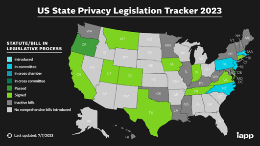 Judging from the International Association of Privacy Professionals’ State Privacy Legislation Tracker (below) Delaware and Oregon will be the subject of our next update. Stay tuned.